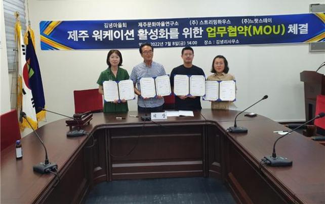 Á¦ÁÖ ±¸ÁÂÀ¾ÀÇ ±è³ç ¸¶À»È¸´Â Áö³ 7¿ù 8ÀÏ(±Ý) Á¦ÁÖ ±è³ç¸®ÀÇ »õ·Î¿î ¼ºÀå ¸ðµ¨ ±¸ÃàÀ» À§ÇØ Á¦ÁÖ¹®È¸¶À»¿¬±¸¼Ò, (ÁÖ)´À¶ù½ºÅ×ÀÌ, (ÁÖ) ½ºÆ®¸®¹ÖÇϿ콺¿Í ÇÔ²² ¿öÄÉÀÌ¼Ç È°¼ºÈ¸¦ À§ÇÑ ´ÙÀÚ°£ ¾÷¹« Çù¾àÀ» ü°áÇß´Ù°í ¹àÇû´Ù.