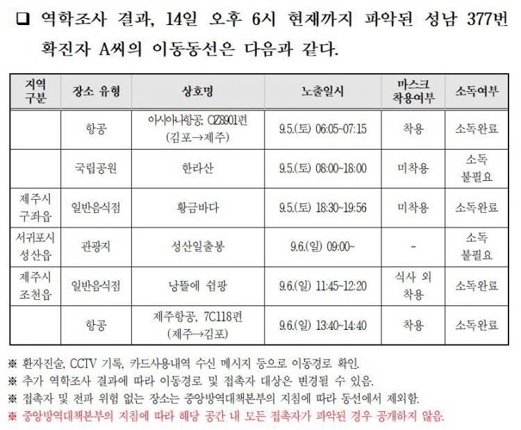 ¼º³² 377¹ø È®ÁøÀÚ A¾¾´Â 9¿ù 5ÀϺÎÅÍ 6ÀϱîÁö Á¦ÁÖ¸¦ ¹æ¹®Çϰí, À̵µÇÑ ÈÄ 6ÀϺÎÅÍ ¿ÀÇÑ¡¤±ÙÀ°Åë µî Äڷγª19 Áõ»óÀÌ ÀÖ¾ú´ø °ÍÀ¸·Î ÆÄ¾ÇµÆ´Ù.