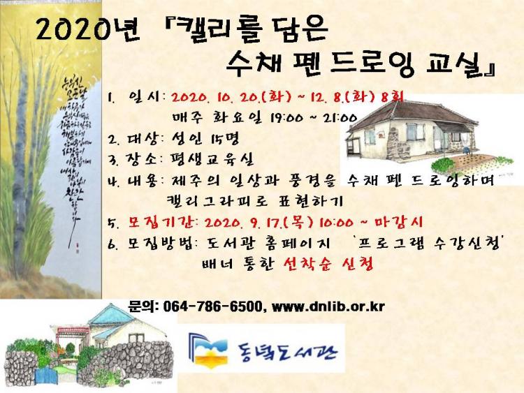 [Á¦ÁÖµµ¹Î½Å¹® = ¿ÀÁØÇõ ±âÀÚ] µ¿³èµµ¼­°ü(°üÀå Çö°üÁÖ)Àº Çкθð ¹× Áö¿ªÁÖ¹ÎÀÇ °ÇÀüÇÑ ¿©°¡½Ã°£ Ȱ¿ë ¹× ÀÚ±â°è¹ß ±âȸ¸¦ ¸¶·ÃÇϰíÀÚ ¡®2020³â Ä̸®¸¦ ´ãÀº ¼öä Ææ µå·ÎÀ× ±³½Ç¡¯ Âü°¡ÀÚ¸¦ ¸ðÁýÇÑ´Ù. ¡®Ä̸®¸¦ ´ãÀº ¼öä Ææ µå·ÎÀ× ±³½Ç¡¯¿¡¼­´Â ¾ÈÁ¤Çâ °­»çÀÇ Áöµµ·Î ±×¸²À» óÀ½ ¹è¿öº¸´Â »ç¶÷µéÀÌ ¼Õ ±×¸²À» ½±°Ô ±×¸®´Â ¹æ¹ýÀ» Å͵æÇÏ¿© Á¦ÁÖÀÇ ÀÏ»ó°ú dz°æÀ» ¼öä Ææ µå·ÎÀ×ÇÏ¿© Á¦ÁÖÀÇ °¨¼ºÀ» ´ãÀº ͏®±×¶óÇǷΠǥÇöÇϱ⠳»¿ëÀ¸·Î ¿î¿µµÈ´Ù. ´ë»óÀº Áö¿ªÁֹΠ15¸íÀ¸·Î 10¿ù 20ÀÏ(È­)ºÎÅÍ 12¿ù 8ÀÏ(È­)±îÁö ¸ÅÁÖ È­¿äÀÏ (Àú³á 7½ÃºÎÅÍ 9½Ã±îÁö) ÃÑ 8ȸ °úÁ¤À¸·Î ¿î¿µµÇ¸ç, Âü°¡ ½ÅûÀº 9¿ù 17ÀÏ(¸ñ) ¿ÀÀü 10½ÃºÎÅÍ µµ¼­°ü ȨÆäÀÌÁö ¡®ÇÁ·Î±×·¥ ¼ö°­½Åû¡¯ ¹è³Ê¸¦ ÅëÇØ ¼±Âø¼øÀ¸·Î ½ÅûÇÏ¸é µÈ´Ù.