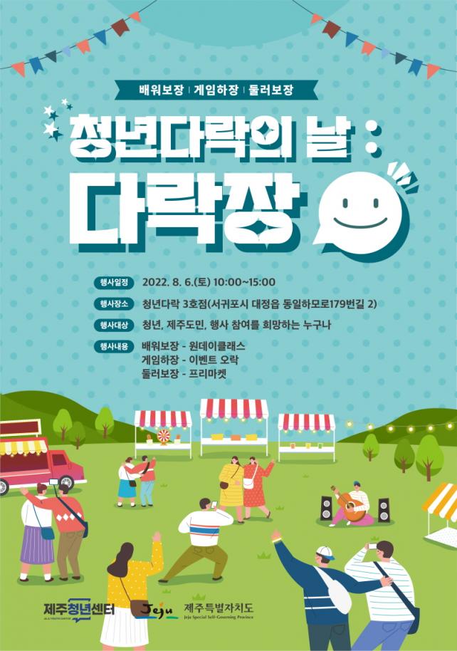 û³â´Ù¶ôÀÇ ³¯ Çà»çÀÇ ÀÚ¼¼ÇÑ ³»¿ëÀº Á¦ÁÖû³â¼¾ÅÍ È¨ÆäÀÌÁö(www.jejuyouth.com)¸¦ ÅëÇØ È®ÀÎÇÒ ¼ö ÀÖÀ¸¸ç, ´ëÇ¥ÀüÈ(¢Ï064-757-9400)·Î ¹®ÀÇÇÏ¸é µÈ´Ù.
