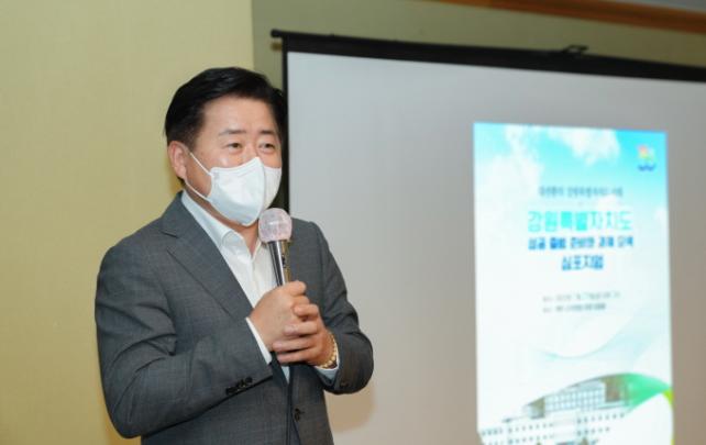 ¿À¿µÈÆ Áö»ç´Â ¡°ÀÚÄ¡ºÐ±Ç ¸ðµ¨ÀÇ ¿Ï¼º¿¡ °¡Àå Áß¿äÇÑ °ÍÀº µµ¹ÎÀÇ ÀÚ±â°áÁ¤±ÇÀ̶ó¸ç, Áß¾ÓÁ¤ºÎ°¡ Ưº°ÀÚÄ¡µµ¸¦ ¼³°èÇÏ°í ¹æÇâÀ» Á¦½ÃÇÏ´Â °ÍÀÌ ¾Æ´Ï¶ó Á¦ÁÖµµ¹Î°ú °¿øµµ¹ÎÀÌ ½º½º·Î ¼³°èÇÏ°í °áÁ¤ÇØ ³ª°¡¾ß ÇÑ´Ù¡±°í ¸»Çß´Ù. ÀÌ¾î ¡°Á¦ÁÖµµ¿Í °¿øµµ°¡ Çù·Âµµ½ÃÀÌÀÚ µ¿¹ÝÀÚ·Î ¾ÕÀ¸·Îµµ ÀÚÄ¡ºÐ±Ç ¸ðµ¨ÀÇ ¿Ï¼º°ú ¹ßÀüÀ» À§ÇØ ÇÔ²² ³ë·ÂÇÏÀÚ¡±°í ´çºÎÇß´Ù.
