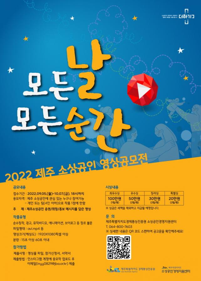 Á¦ÁÖ¼Ò»ó°øÀΰ濵Áö¿ø¼¾ÅÍÀÇ ¿µ»ó°ø¸ðÀüÀº 2020³âºÎÅÍ °ñ¸ñ»ó±Ç Ȱ¼ºÈ¿Í µµ³» ¼Ò»ó°øÀÎ È«º¸¸¦ À§ÇØ ½Ç½ÃÇØ ¿ÃÇØ 3ȸ°¸¦ ¸ÂÀÌÇϰí ÀÖ´Ù.À̹ø °ø¸ðÀüÀº ¼Ò»ó°øÀÎ ÀÀ¿ø/Èñ¸Á/È«º¸ ¸Þ½ÃÁö ÁÖÁ¦·Î, Á¦ÁÖ ¼Ò»ó°øÀο¡ °ü½ÉÀÖ´Â Àü±¹¹Î ´©±¸³ª Âü¿© °¡´ÉÇÏ´Ù. Ãâǰ Çü½ÄÀº ¼ø¼ö âÀÛ, ±¤°í, ¹ÂÁ÷ºñµð¿À, ¾Ö´Ï¸ÞÀ̼Ç, ºêÀÌ·Î±× µî À帣¿¡ »ó°ü¾øÀ¸¸ç 15ÃÊ ÀÌ»ó 60ÃÊ À̳» ¿µ»óÀÌ´Ù.