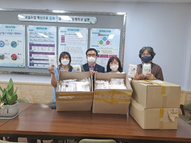 [Á¦ÁÖµµ¹Î½Å¹® = ³²Àç¿Á ±âÀÚ] Ç¥¼±°íµîÇб³(±³Àå Á¤¼ºÁß)´Â Áö³­ 9¿ù 15ÀÏ(È­) ±³Àå½Ç¿¡ Çкθðȸ ¼ÛÀºÀÚ È¸ÀåÀ» ºñ·ÔÇÑ ÀÓ¿øµéÀÌ ¹æ¹®ÇÏ¿© Äڷγª19 °¨¿°º´ ¿¹¹æÀ» Áö¿øÇϱâ À§Çؼ­ Àü±³»ýµé¿¡°Ô ¸¶½ºÅ© 3,500ÀåÀ» ±âÁõÇÏ¿© ÈÆÈÆÇÑ È­Àç°¡ µÇ°í ÀÖ´Ù. Ç¥¼±°í Çкθðȸ ¼ÛÀºÀÚ È¸ÀåÀº ¡°¿ì¸® ÇлýµéÀÌ Äڷγª19 À§±â¿¡ ´Ü ÇÑ ¸íµµ °¨¿°µÇ´Â ºÒÇàÀÌ ¾ø±â¸¦ ±â¿øÇϰí, ÇâÈÄ¿¡µµ Äڷγª19 À§±â°¡ Áö¼ÓµÉ °æ¿ì ¸¶½ºÅ© Áö¿øÀ» À̾°Ú´Ù¡±¶ó°í ¹àÇû´Ù.