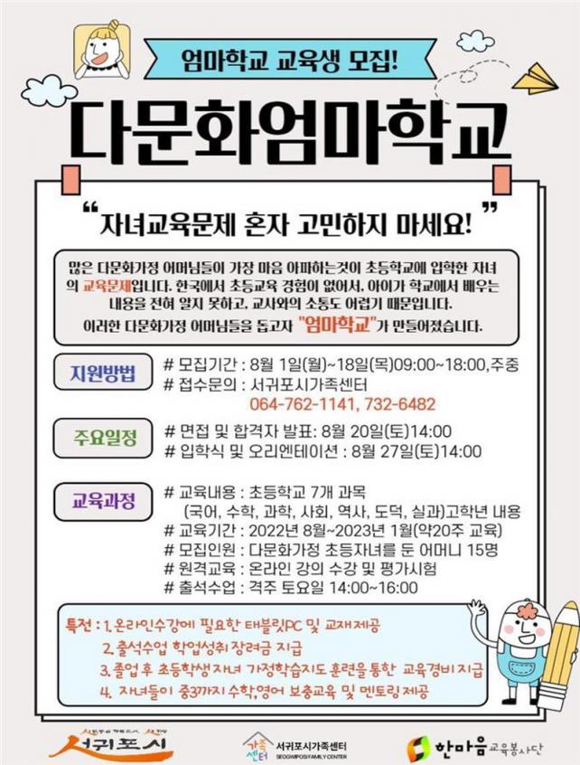 ´Ù¹®È¾ö¸¶Çб³´Â °¡Á¤¿¡¼ ÀÚ³àÇнÀÀ» ÁöµµÇϰí Çб³ ¼±»ý´Ô°ú ¼ÒÅëÇÒ ¼ö ÀÖ´Â ¡®¾ö¸¶ ¿ªÇÒÀ» ÇÏ´Â ´Ù¹®È ¾ö¸¶¡¯¸¦ ¾ç¼ºÇϱâ À§ÇÑ °ÍÀ¸·Î, 8¿ù 27ÀÏ ÀÔÇнÄÀ» ½ÃÀÛÀ¸·Î ³»³â 1¿ù±îÁö ¿î¿µµÉ ¿¹Á¤ÀÌ´Ù. ÁÖ¿ä ±³À°³»¿ëÀ¸·Î´Â ¡ãÃʵîÇб³ ±³À°°úÁ¤ 7°³°ú¸ñ(±¹¾î, ¼öÇÐ, °úÇÐ, »çȸ, ¿ª»ç, µµ´ö, ½Ç°ú) ¿Â․¿ÀÇÁ¶óÀÎ ¼ö¾÷ ÁøÇà ¡ãÆò°¡½ÃÇè ¡ã°¡Á¤ÇнÀÁöµµÈÆ·Ã µîÀ̸ç, ±³À°°úÁ¤ À̼ö ÈÄ¿¡´Â ÃʵîÇб³Á¹¾÷ °ËÁ¤°í½Ã¿¡µµ ÀÀ½ÃÇÏ°Ô µÈ´Ù.