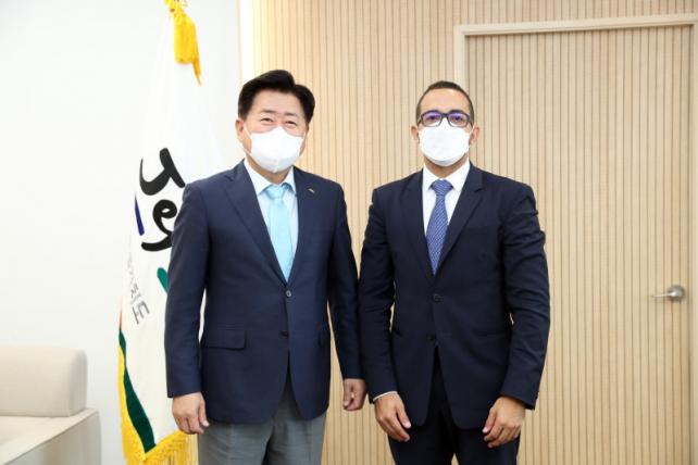 ¿À¿µÈÆ Á¦ÁÖµµÁö»ç´Â 11ÀÏ ¿ÀÀü 10½Ã µµÁö»ç Áý¹«½Ç¿¡¼ ¼¼ÀÌÅ© ÆÄÈû ºó ¼úź ºó Ä«¸®µå ¾ËÄ«½Ã¹Ì(H.H. Sheikh Fahim bin Sultan bin Khalid Al Qasimi) »þ¸£ÀÚ Á¤ºÎ°ü°èºÎ ÁýÇàÀ§¿øÀå°ú ¸¸³ª ¾ç Áö¿ª °£ Æ÷°ýÀû Çù·Â¿¡ ¶æÀ» ¸ð¾Ò´Ù.