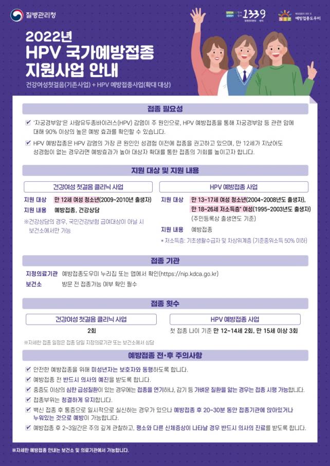 ¿ÃÇØ óÀ½À¸·Î ´ë»óÀÚ¿¡ Æ÷ÇÔµÈ 18~26¼¼ Àú¼ÒµæÃþ ¿©¼ººÐµéÀÌ ¿¹¹æÁ¢Á¾¿¡ Âü¿©ÇÒ ¼ö ÀÖµµ·Ï º¸°Ç¼Ò¿¡¼´Â ´ë»óÀÚ ¸í´ÜÀ» ÆÄ¾ÇÇÏ¿© ¹®ÀÚ ¾È³»Çϰí, Á¢Á¾À²À» Áö¼ÓÀûÀ¸·Î ¸ð´ÏÅ͸µÇϰí ÀÖ´Ù.