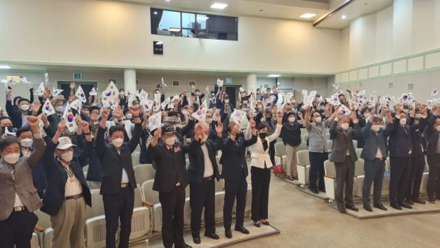 À̳¯ Çà»ç¿¡´Â ±¹±Ç »ó½ÇÀÇ ºñ±ØÀûÀÎ ¿ª»ç¸¦ µÇ»õ±â°í µ¶¸³À» À§ÇØ Èñ»ýÇÑ ¼ø±¹¼±¿À» Ã߸ðÇϱâ À§ÇØ µµ³» ÁÖ¿ä ±â°ü¡¤´ÜüÀå ¹× °Çý¼± ±¤º¹È¸Á¦ÁÖÆ¯º°ÀÚÄ¡µµÁöºÎÀå°ú ±¤º¹È¸¿ø, º¸ÈÆ ´ÜüÀå°ú ȸ¿ø µî 150¸íÀÌ Âü¼®Çß´Ù.