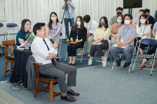 À̹ø Çà»ç´Â ¹Î¼±8±â »õ µµÁ¤ÀÇ Ã¶Çаú Àü·«À» °øÀ¯Çϰí, µµÁ¤ ¿î¿µ°ú Á¦ÁÖÀÇ ¹Ì·¡ ¹ßÀü¹æ¾È¿¡ ´ëÇØ °°ÀÌ °í¹ÎÇϱâ À§ÇØ ¸¶·ÃµÆ´Ù.ƯÈ÷ ¹Ì·¡ Á¦ÁÖµµÁ¤À» À̲ø¾î ³ª°¥ ÀþÀº ¼¼´ëÀÎ 7~8±Þ °ø¹«¿ø 100¿© ¸í°ú ¿À¿µÈÆ Áö»ç´Â ±âÁ¸ °¿¬ ¹æ½Ä¿¡¼ ¹þ¾î³ª ÀÚÀ¯·Î¿î ºÐÀ§±â¿¡¼ Á¦ÁÖµµÀÇ ¹ßÀüÀ» À§ÇÑ Âü½ÅÇÑ ÀǰßÀ» Æí¾ÈÇÏ°Ô ³ª´©´Â ½Ã°£À» °¡Á³´Ù.