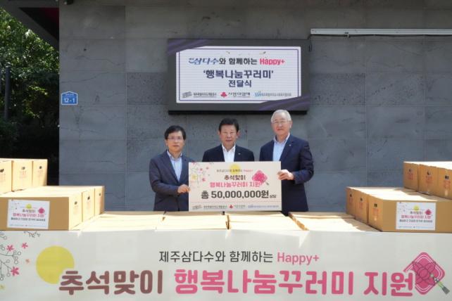 Á¦ÁÖ°³¹ß°ø»ç´Â Á¦ÁÖ»çȸº¹Áö°øµ¿¸ð±Ýȸ ¹× Á¦ÁÖ»çȸº¹ÁöÇùÀÇȸ¿Í ÇÔ²² Äڷγª19 È®»êÀ¸·Î ÀÌÁß°í¸¦ °Þ°í ÀÖ´Â º¹Áö»ç°¢Áö´ë ¼Ò¿Ü°èÃþ 500°¡±¸¸¦ ¼±Á¤ÇØ °¡±¸´ç 10¸¸¿ø »ó´çÀÇ »ýÇÊǰ ²Ù·¯¹Ì ÃÑ 5,000¸¸¿ø »ó´çÀ» Àü´ÞÇß´Ù.