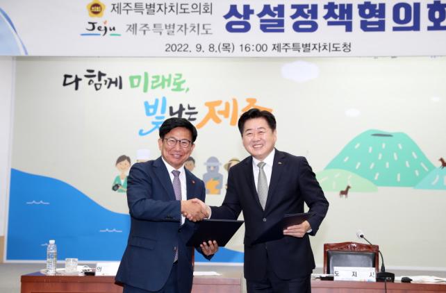 À̳¯ Á¦ÁÖµµ¿Í µµÀÇȸ´Â ¿ÀÈÄ 4½Ã Á¦ÁÖµµÃ» º»°ü 4Ãþ ޶óȦ¿¡¼ »ó¼³Á¤Ã¥ÇùÀÇȸ¸¦ °³ÃÖÇϰí, ¡ãº¹Áö »ç°¢Áö´ë ÇØ¼Ò¸¦ À§ÇÑ »çȸ¾ÈÀü¸Á °È ¡ã¹Î»ýȸº¹À» À§ÇÑ ³»³âµµ ±¹ºñ¿¹»ê °øµ¿ ´ëÀÀ ¡ãÁ¦ÁÖ Æ¯º°ÀÚÄ¡ °È¸¦ À§ÇÑ ÇàÁ¤Ã¼Á¦ °³Æí Çù·Â ¡ãÀλçû¹®È¸ Á¦µµ °³¼± ¡ãÁö¹æÀÇȸ µ¶¸³¼º, ÀÚÀ²¼º ºÎ¿© µî ¼±µµÀû Á¦ÁÖÀÇȸ»ó ±¸Çö ¡ã4¡¤3ÀÇ Á¤ÀǷοî ÇØ°áÀ» À§ÇÑ °øµ¿³ë·Â µî¿¡ ±ä¹ÐÇÑ Á¤Ã¥ °øÁ¶¸¦ ¾à¼ÓÇß´Ù.