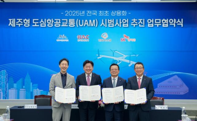 Á¦ÁÖÆ¯º°ÀÚÄ¡µµ¿Í Çѱ¹°øÇ×°ø»ç, ÇÑȽýºÅÛ, SKÅÚ·¹ÄÞÀ¸·Î ±¸¼ºµÈ ¡®Á¦ÁÖÇü µµ½ÉÇ×°ø±³Åë(J-UAM)¡¯ µå¸²ÆÀÀÌ 14ÀÏ ¿ÀÀü Á¦ÁÖµµÃ» 4Ãþ ޶óȦ¿¡¼ ¾÷¹«Çù¾àÀ» ¸Î°í 2025³â ±¹³» ÃÖÃÊ UAM »ó¿ëȸ¦ ÇâÇÑ Ã¹¹ßÀ» ³»µðµ±´Ù.