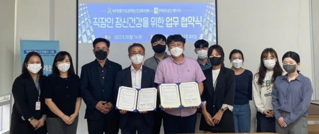 ¾÷¹«Çù¾à¿¡´Â ¡â ±Ù·ÎÀÚÀÇ Á¤½Å°Ç°ÁõÁø, »ý¸íÁ¸Áß ¹®ÈÁ¶¼ºÀ» À§ÇÑ »óÈ£ ¾÷¹«Áö¿ø¿¡ ÇùÁ¶Çϸç, ¡â »óÈ£¹ßÀüÀ» À§ÇÑ ³×Æ®¿öÅ©¸¦ ±¸ÃàÇϰí, ¡â ¾ç ±â°üÀÇ ¹ßÀü°ú ¿ìÈ£ÁõÁø¿¡ °üÇÑ »çÇ×À» Çù·ÂÇÑ´Ù´Â ³»¿ëÀÌ Æ÷ÇԵǾî ÀÖ´Ù. ƯÈ÷, À̹ø Çù¾àÀÇ ÁÖ¿ä ¸ñÀûÀº ±Ù·ÎÀÚÀÇ Á¤½ÅÀû ¾î·Á¿òÀ» ÆÄ¾ÇÇϰí À̸¦ ÇØ¼ÒÇÒ ¼ö ÀÖ´Â ½É¸®Áö¿ø ¼ºñ½º¸¦ Á¦°øÇÒ ¼ö ÀÖµµ·Ï ȯ°æÀ» Á¶¼ºÇÏ´Â °ÍÀ¸·Î, ÁÖÅðü¸®°ø´Ü Á¦ÁÖÁö»ç ±Ù·ÎÀÚµéÀÌ °Ç°ÇÏ°Ô ÀÏÀ» ÇÒ ¼ö ÀÖµµ·Ï µ½´Â °ÍÀÌ´Ù. À̸¦ À§ÇØ ±Ù·ÎÀÚµéÀÇ Á¤½Å°Ç°À» À§ÇÑ Á÷¹«½ºÆ®·¹½º °Ë»ç¿Í »ó´ã, ½ºÆ®·¹½º ¿¹¹æ ±³À°, Á¤½Å°Ç° ÇÁ·Î±×·¥ µîÀÌ °èȹµÇ¾î ÀÖ´Ù. ÇÑÆí, Á¦ÁÖÆ¯º°ÀÚÄ¡µµ±¤¿ªÁ¤½Å°Ç°º¹Áö¼¾ÅÍ ±è¹®µÎ ¼¾ÅÍÀåÀº ¡°ÁÖÅðü¸®°ø´Ü Á¦ÁÖÁö»ç¿¡¼ ÁøÇàÇÏ´Â Á÷ÀåÀÎ Á¤½Å°Ç° »ç¾÷À» ½ÃÀÛÀ¸·Î, Á¦ÁÖµµ ³» Á÷ÀåÀεéÀ» À§ÇÑ Á¤½Å°Ç° »ç¾÷ÀÌ È®´ëµÇ±æ ¹Ù¶õ´Ù.¡±¶ó°í ¸»Çß´Ù.