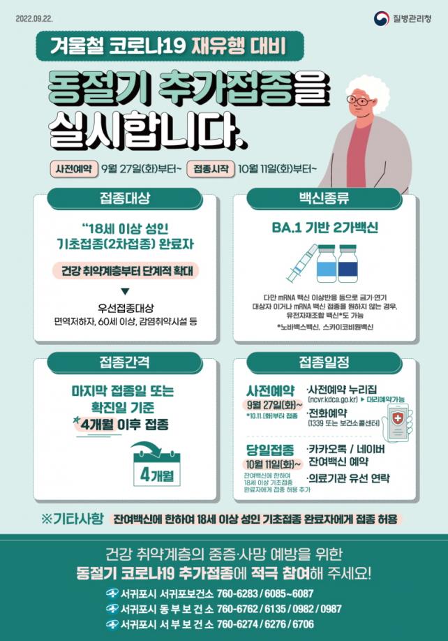9. 27.(È)ºÎÅÍ ÁøÇàµÆ´ø »çÀü¿¹¾à ´ë»óÀÚ(°¨¿°Ãë¾à½Ã¼³, ¸é¿ªÀúÇÏÀÚ, 60¼¼ ÀÌ»ó ¿¬·ÉÃþ)´Â ¿¹¾àÀÏÀÚ¿¡ ¸ÂÃç Á¢Á¾À» ½ÃÇàÇϸç, 10. 11.(È)ºÎÅÍ´Â 18~59¼¼ ±âÃÊÁ¢Á¾(2Â÷±îÁö) ÀÌ»ó ¿Ï·á ÈÄ 4°³¿ùÀÌ Áö³ ¼ºÀεµ ÁöÁ¤ º´¡¤ÀÇ¿ø¿¡¼ ÀÜ¿©¹é½ÅÀ» Ȱ¿ëÇÑ ´çÀÏÁ¢Á¾ÀÌ °¡´ÉÇÏ´Ù.