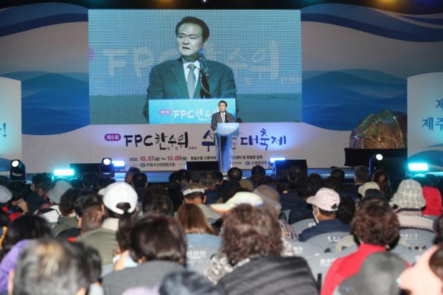 [Á¦ÁÖµµ¹Î½Å¹® = ¿ÀÁØÇõ ±âÀÚ] ±èÈñÇö Á¦ÁÖÆ¯º°ÀÚÄ¡µµ Á¤¹«ºÎÁö»ç´Â 7ÀÏ ÇѸ²¼ö»ê¾÷Çùµ¿Á¶ÇÕ(Á¶ÇÕÀå ±è½ÃÁØ)ÀÌ ÁÖÃÖÇÑ 2022³â Á¦6ȸ ÇѼöÀ§ ¼ö»ê¹° ´ëÃàÁ¦ Çà»ç¿¡ Âü¼®ÇØ ÇѸ²¼öÇù Á¶ÇÕ¿ø ¹× ¾î¾÷ÀεéÀÇ ³ë°í¿¡ °¨»ç¸¦ Ç¥Çϰí, °Ý·Á¸¦ ÀüÇß´Ù.