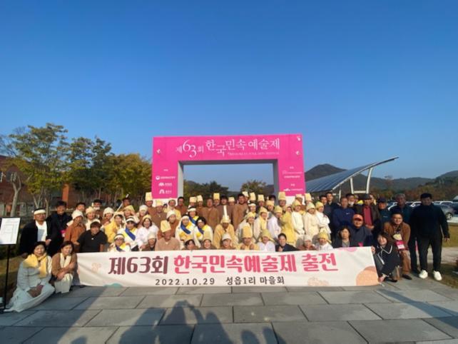 Àü±¹ 21°³ ½Ã¡¤µµ(À̺Ï5µµ Æ÷ÇÔ)¸¦ ´ëÇ¥ÇØ ¹Î¼Ó¿¹¼ú ´ëÇ¥ÆÀ 2,000¿© ¸íÀÌ Çѱ¹¹Î¼Ó¿¹¼úÁ¦¿¡¼ °æ¿¬À» ÆîÃÆ´Ù. Áö³ 2019³â Á¦58ȸ ޶ó¹®ÈÁ¦ ¹Î¼Ó¿¹¼ú Á¾¸ñ¿¡¼ ÃÖ¿ì¼ö»ó ¼ö»óÇÑ ¹Ù°¡ ÀÖ´Â ¼ºÀ¾1¸® ¸¶À»È¸´Â À̹ø Á¦63ȸ Çѱ¹¹Î¼Ó¿¹¼úÁ¦¿¡¼´Â ÀÛǰ¸í ¡®¼Ãµ²É¹ç ¿µÀå¼Ò¸®¡¯¸¦ ¼±º¸¿´´Ù.