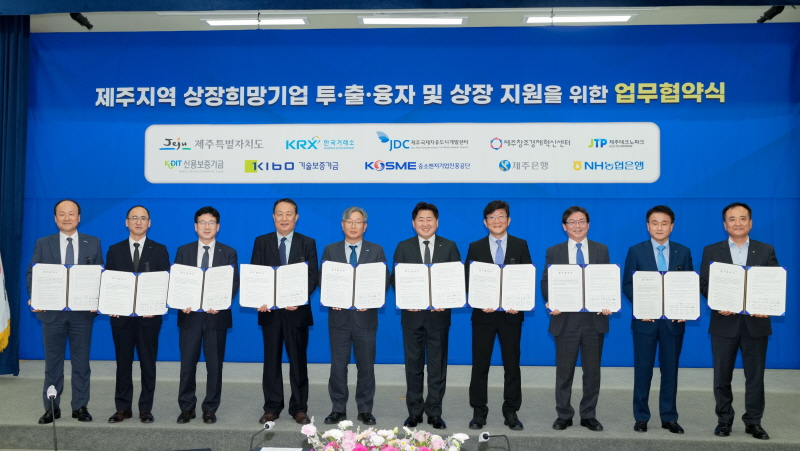 À̹ø Çù¾à¿¡´Â Á¦ÁÖµµ¿Í »óÀå ÁÖ°ü±â°üÀÎ Çѱ¹°Å·¡¼Ò¸¦ ºñ·ÔÇØ ¡ã±â¾÷ ¹ß±¼¡¤À°¼º µî Áö¿ø±â°ü(Á¦ÁÖ±¹Á¦ÀÚÀ¯µµ½Ã°³¹ß¼¾ÅÍ, Á¦ÁÖâÁ¶°æÁ¦Çõ½Å¼¾ÅÍ, Á¦ÁÖÅ×Å©³ëÆÄÅ©) ¡ãÁß¼Ò±â¾÷ Àڱݡ¤º¸Áõ¡¤ÄÁ¼³ÆÃ¡¤±â¼ú Áö¿ø µî ´ã´ç±â°ü(½Å¿ëº¸Áõ±â±Ý, ±â¼úº¸Áõ±â±Ý, Áß¼Òº¥Ã³±â¾÷ÁøÈï°ø´Ü Á¦ÁÖÁö¿ªº»ºÎ) ¡ãÁö¿ªÀºÇà(Á¦ÁÖÀºÇà, NH³óÇùÀºÇà Á¦ÁÖ¿µ¾÷º»ºÎ) µîÀÌ Âü¿©Çß´Ù.