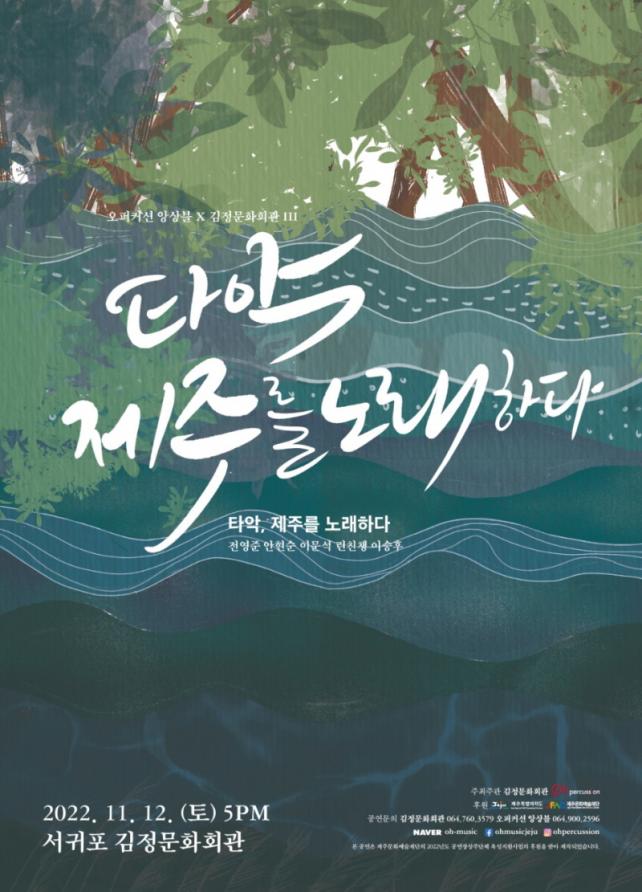 <Ÿ¾Ç, Á¦ÁÖ¸¦ ³ë·¡ÇÏ´Ù> °ø¿¬¿¡¼´Â ¡®Á¦ÁÖ¡¯¸¦ ÁÖÁ¦·Î ÇÑ À§ÃË Ã¢ÀÛ°î°ú âÀÛ Æí°î ÀÛǰ µî ±âÁ¸ ¿ÀÄɽºÆ®¶ó °îÀ» Á¦ÁÖ ÀÚ¿¬ÀÇ ¿µ»óÀ̹ÌÁö¿Í ÇÔ²² µ¿․¼¾çÀÇ Å¸¾Ç±â·Î ¿¬ÁÖµÉ ¿¹Á¤ÀÌ¾î¼ Á¦ÁÖÀÇ ÀÚ¿¬°ú Ÿ¾Ç±â À½¾ÇÀÇ ¸Å·ÂÀ» ¸¸³£ÇÒ ¼ö ÀÖ´Â ±âȸ°¡ µÉ °ÍÀÌ´Ù.