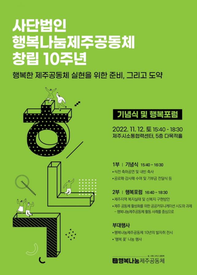 À̹ø Æ÷·³Àº Á¦ÁÖÀÇ ¼ö´À½ ¹®È¸¦ ½Å(ãæ)¼ö´À½À¸·Î ȸº¹½Ã۰í, Á¸Áß°ú ¹è·Á°¡ ³ÑÄ¡´Â ÇູÇÑ Á¦ÁÖ »çȸ¸¦ ¸¸µé±â À§ÇÑ ÀÌÁ¤Ç¥¸¦ Á¦½ÃÇÒ °ÍÀ¸·Î º¸ÀδÙ. ÀÌ ¿Ü¿¡µµ (»ç)Çູ³ª´®Á¦ÁÖ°øµ¿Ã¼ 10³âÀÇ ¹ßÀÚÃ븦 µ¹¾Æº¼ ¼ö ÀÖ´Â Àü½Ã¿Í ÇÔ²², »çȸÀû±â¾÷ ÀϹè¿òÅÍ(´ëÇ¥ ¿À¿µ¼ø)ÀÇ ÈÄ¿øÀ¸·Î û³â Àå¾ÖÀεéÀÌ Á÷Á¢ Ű¿î ¹Ý·Á½Ä¹°À» ³ª´²ÁÖ´Â ¡®Çູ ²É ³ª´®Çà»ç¡¯, ÃàÇϰø¿¬ µî ´Ù¾çÇÑ Çà»çµµ ÇÔ²² ÁøÇàµÉ ¿¹Á¤ÀÌ´Ù.