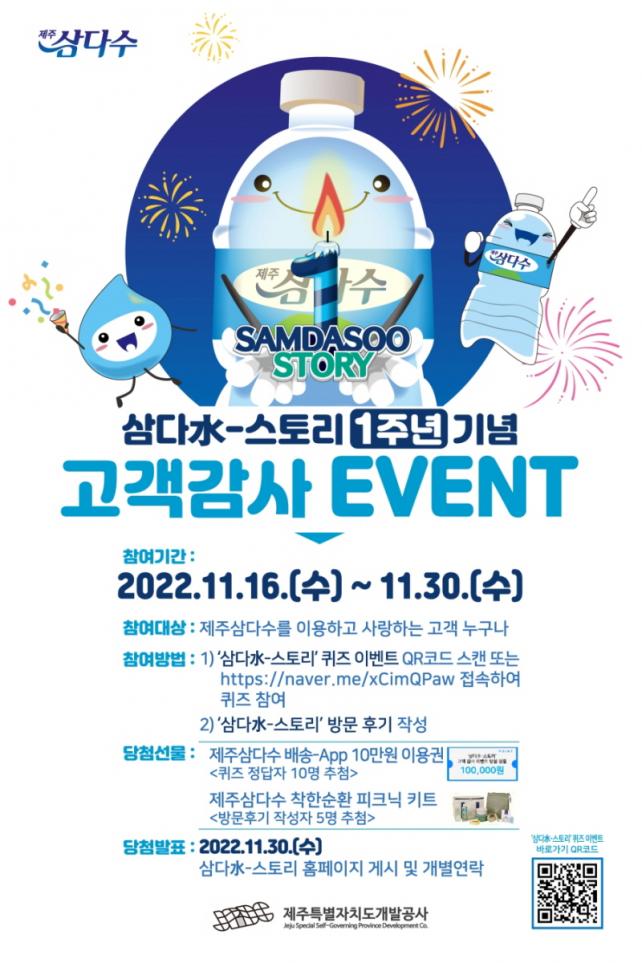 Á¦ÁÖ»ï´Ù¼ö¸¦ »ý»ê, ÆÇ¸ÅÇϰí ÀÖ´Â Á¦ÁÖÆ¯º°ÀÚÄ¡µµ°³¹ß°ø»ç(»çÀå ±èÁ¤ÇÐ)´Â ¼ÒºñÀÚµéÀÇ ¾Ë±Ç¸® ÃæÁ·À» À§ÇØ ¿ÀÇÂÇÑ ¡®»ï´Ù¼ö ½ºÅ丮 ¾ÆÄ«À̺ꡯÀÇ 1ÁÖ³âÀ» ±â³äÇÑ À̺¥Æ®¸¦ ÁøÇàÇÑ´Ù°í 16ÀÏ ¹àÇû´Ù.