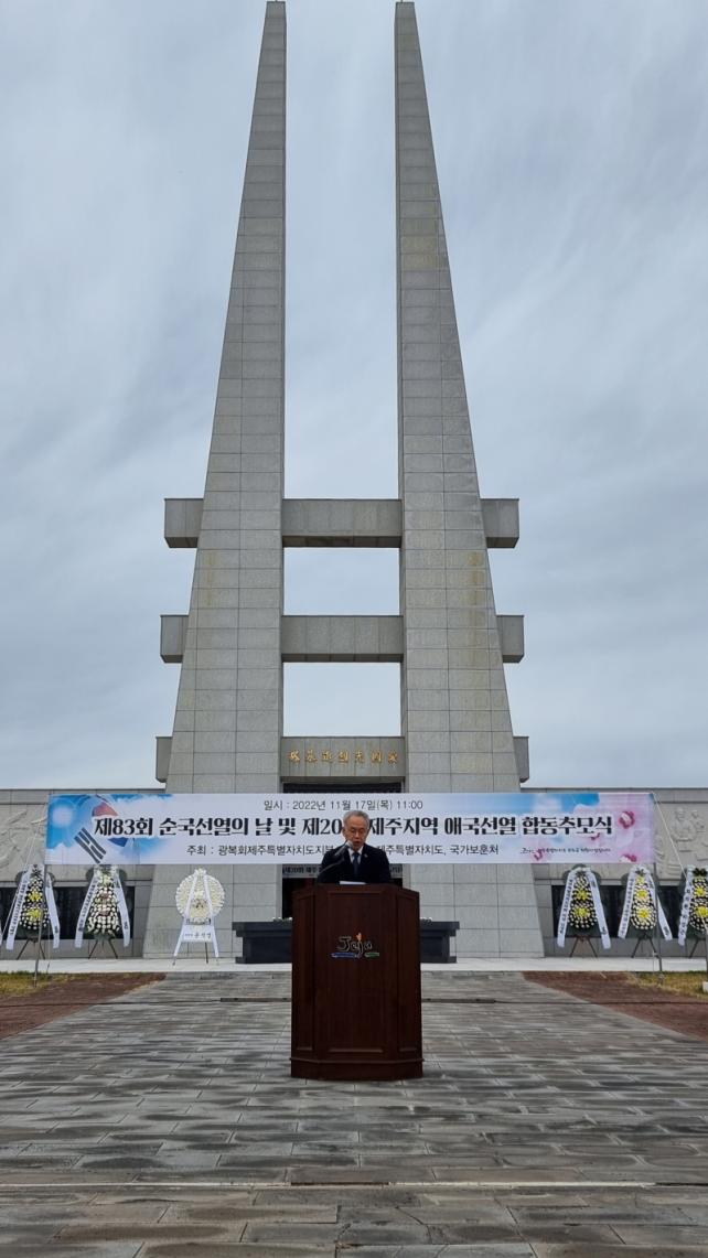 ¿À¿µÈÆ µµÁö»ç´Â ¾çÈ«ÁØ º¸ÈÆÃ»ÀåÀÌ ´ëµ¶ÇÑ ±â³ä»ç¸¦ ÅëÇØ ¡°¼±¿µéÀÇ ÅëÇѰú ½½ÇÄ, ¼ö³°ú Èñ»ýÀÌ Á¶±¹ÀÇ Èñ¸ÁÀ¸·Î ÇǾ ÀÚÀ¯·Ó°í dz¿ä·Î¿î ´ëÇѹα¹À» ¸¸µé¾î ³½ °Í¡±À̶ó¸ç, ¡°¼þ°íÇÑ Èñ»ý¿¡ ´ëÇÑ ÇÕ´çÇÑ ¿¹¿ì¸¦ À§ÇØ °¢°íÀÇ ³ë·ÂÀ» ±â¿ïÀ̰ڴ١±°í °Á¶Çß´Ù.