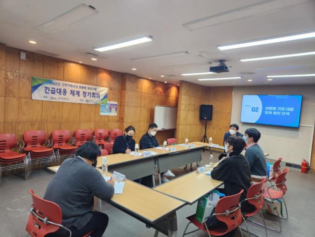 À̹ø ±ä±Þ´ëÀÀü°è ÇϹݱ⠰£´ãȸ¿¡¼´Â µµÃ»¼Ò³â»ó´ãº¹Áö¼¾ÅÍ¿¡¼ °íÀ§±â û¼Ò³â ¸ÂÃãÇü Áö¿ø »ç¾÷À» À¯°ü±â°ü°ú °øÀ¯ÇÏ°í °¢ ±â°üº° ±ä¹ÐÇÑ ÇùÁ¶ ¹æ¾ÈÀ» ¸ð»öÇÏ¿´´Ù.