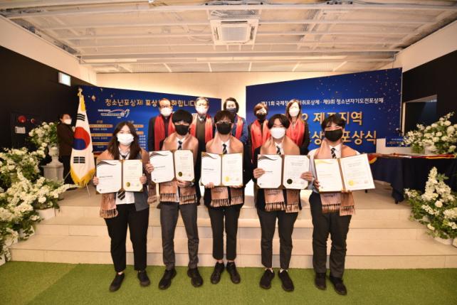 ¿ÃÇØ Æ÷»óÀÚ´Â ±¹Á¦Ã»¼Ò³â¼ºÃëÆ÷»óÁ¦ ¡âÁ¦ÁÖ½Ãû¼Ò³â¼ö·Ã°ü(Àº2, µ¿2), ¡âÇѱ¹±¹Á¦Çб³(Àº2. µ¿32), ¡âÇѸ²Ã»¼Ò³â¹®ÈÀÇÁýû¼Ò³â¹æ°úÈľÆÄ«µ¥¹Ì(Àº1, µ¿3), û¼Ò³âÀڱ⵵ÀüÆ÷»óÁ¦ ¡âÁ¦ÁÖ½Ãû¼Ò³â¼ö·Ã°üû¼Ò³â¹æ°úÈľÆÄ«µ¥¹Ì(Àº3) ¡â¼±ÍÆ÷½Ãû¼Ò³â¼ö·Ã°ü(±Ý1, Àº2, µ¿2), ¡â´ëÁ¤Ã»¼Ò³â¼ö·Ã°ü(µ¿1), ¡âÇѸ²Ã»¼Ò³â¹®ÈÀÇÁýû¼Ò³â¹æ°úÈľÆÄ«µ¥¹Ì(Àº4, µ¿4), ¡âÇѱ¹¹æ¼ÛÅë½Å´ëÇб³ û¼Ò³â±³À°°ú Á¦ÁÖÁö¿ª¼¾ÅÍ(Àº1, µ¿1) ÃÑ 7°³¼ÒÀÇ Æ÷»ó¼¾ÅÍ¿¡¼ ¹èÃâÇß´Ù.