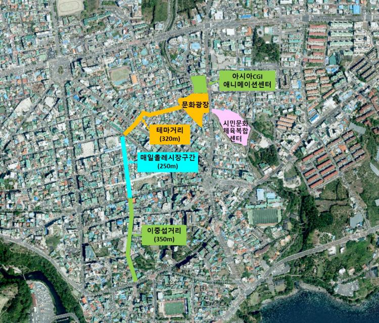 ±×¸®°í, Àå±âÀûÀ¸·Î Àαٿ¡ À§Ä¡ÇÑ ÀÌÁß¼·°Å¸®, ¸ÅÀϿ÷¹½ÃÀå, ¾Æ½Ã¾ÆCGI¾Ö´Ï¸ÞÀ̼Ǽ¾ÅÍ¿Í ÇâÈÄ °Ç¸³µÉ ½Ã¹Î¹®ÈüÀ°º¹ÇÕ¼¾ÅÍ µî °ÅÁ¡ °ø°£À» À̾îÁÖ¾î ¼±ÍÆ÷½Ã ¿øµµ½ÉÀÇ ¹®Èº§Æ® Áß½ÉÃàÀ¸·Î Á¶¼ºÇÒ °èȹÀÌ´Ù.