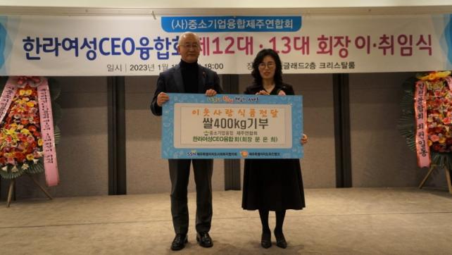 [Á¦ÁÖµµ¹Î½Å¹® = ¿ÀÁØÇõ ±âÀÚ] (»ç)Áß¼Ò±â¾÷À¶ÇÕÁ¦ÁÖ¿¬ÇÕȸ ÇѶ󿩼ºCEOÀ¶ÇÕȸ(ȸÀå ¹®ÀºÈñ)´Â 13ÀÏ ¸ÞÁ¾±Û·¡µå Å©¸®½ºÅ»È¦¿¡¼ ÁøÇàµÈ ȸÀå ÀÌ¡¤ÃëÀÓ½ÄÀ» ±â³äÇØ Á¦ÁÖÆ¯º°ÀÚÄ¡µµÇªµå¹ðÅ©(´ëÇ¥ °í½ÂÈ)¿¡ ½Ò 400kgÀ» Àü´ÞÇß´Ù.