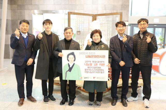 [Á¦ÁÖµµ¹Î½Å¹® = ¿ÀÁØÇõ ±âÀÚ] ±è¸¸´öÀç´Ü(ÀÌ»çÀå ¾ç¿øÂù)°ú ±è¸¸´ö±â³ä°ü(°üÀå °¿µÁø)ÀÌ ¼³¸íÀýÀ» ¸Â¾Æ µµ³» Ȧ·Î»ç´Â ¾î¸£½Åµé°ú »çȸº¹Áö½Ã¼³¿¡ ±è¸¸´ö»ç¶ûÀÇ ½Ò 1ÅæÀ» Àü´ÞÇß´Ù.