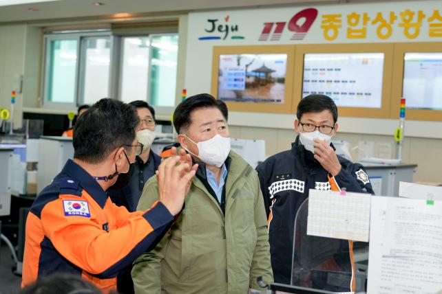 Á¦ÁÖµµ´Â ¿À´Â 23ÀϺÎÅÍ 25ÀϱîÁö Á¦ÁÖ Àü¿ª¿¡ ´ë¼³°ú °Ç³, dz¶û, ÇÑÆÄÆ¯º¸°¡ ¹ßÈ¿µÉ °ÍÀ¸·Î ¿¹»óµÊ¿¡ µû¶ó Áö³ 20ÀÏ Àç³¾ÈÀü´ëÃ¥º»ºÎ »óȲ½Ç¿¡¼ µµ¹Î¾ÈÀü°Ç°½ÇÀå ÁÖÀç·Î »óȲÆÇ´ÜȸÀǸ¦ °³ÃÖÇß´Ù.