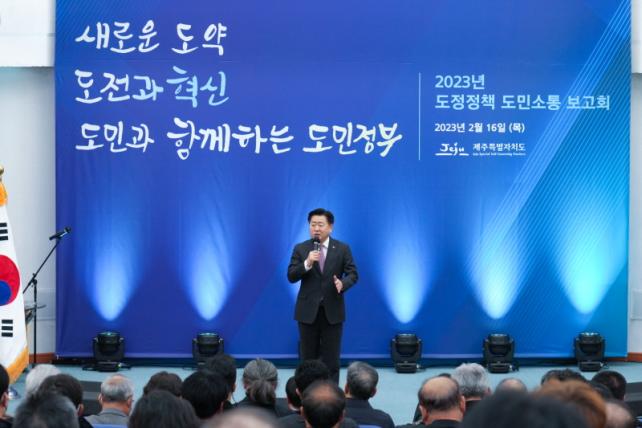 ÀÌ¿¡ ¿À¿µÈÆ Áö»ç´Â »ê¾÷ÀÇ Á¤ÀǷοî Àüȯ, Á¦ÁÖÀÇ ÀÚ¿øÀ» Áö۰í Ȱ¿ëÀ» È®´ëÇÏ´Â Á¤Ã¥ ¸¶·Ã µî¿¡ Èû¾µ °ÍÀ» ¾à¼ÓÇϰí, ¡°µµ¹ÎµéÀÇ ¼ÒÁßÇÑ ÀǰßÀ» Àß Á¤¸®ÇÏ°í °ËÅäÇØ µµÁ¤Á¤Ã¥¿¡ ¹Ý¿µÇØ ³ª°¡°Ú´Ù¡±°í ´äÇß´Ù. À̳¯ º¸°íȸ¿¡¼´Â ¹Î¼±8±â Á¦ÁÖµµÁ¤ Ãâ¹ü ÀÌÈÄ º¯ÈµÈ »çÇ×°ú ÇÔ²² 2023³â Á¤Ã¥¹æÇâ ¹× ÁÖ¿ä ¾÷¹«°èȹ¿¡ ´ëÇÑ º¸°í°¡ À̾îÁ³´Ù.