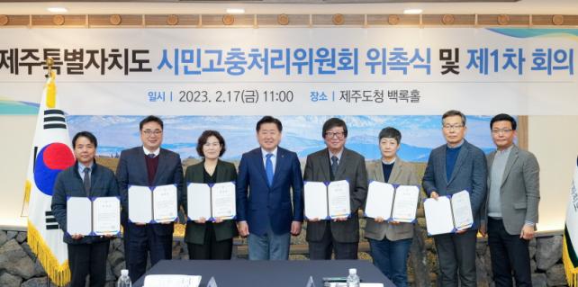 Á¦ÁÖµµ´Â 17ÀÏ ¿ÀÀü 11½Ã Á¦ÁÖµµÃ» º»°ü 2Ãþ ¹é·ÏȦ¿¡¼ ¿À¿µÈÆ Áö»ç¿Í À§¿øÈ¸ À§ÃËÀ§¿ø 6¸íÀÌ Âü¼®ÇÑ °¡¿îµ¥ ¡®½Ã¹Î°íÃæÃ³¸®À§¿øÈ¸ Ãâ¹ü½Ä ¹× 1Â÷ ȸÀÇ¡¯¸¦ °³ÃÖÇß´Ù. À̳¯ Ãâ¹ü½ÄÀº À§¿øÈ¸ ±¸¼º ÃßÁø°æ°ú ¹× ¿î¿µ°èȹ¿¡ ´ëÇÑ º¸°í¸¦ ½ÃÀÛÀ¸·Î À§¿ø À§ÃËÀå ¼ö¿©, À§¿øÀ塤ºÎÀ§¿øÀå ¼±Ãâ, À§¿øÈ¸ Ȱµ¿¹æ¾È ¹× ÇâÈÄ °èȹ ³íÀÇ ¼øÀ¸·Î ÁøÇàµÆ´Ù. ÃÊ´ë À§¿øÀå¿¡´Â Ȳ¼®±Ô À§¿ø, ºÎÀ§¿øÀå¿¡´Â Àå¼Ò¿µ À§¿øÀÌ ¼±ÃâµÆ´Ù.