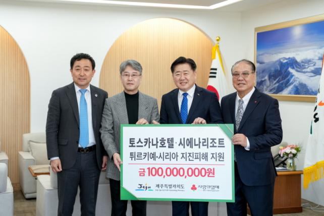 ÇÑÆí, Á¦ÁÖµµ´Â 2¿ù 24ÀϺÎÅÍ 3¿ù 3ÀϱîÁö µµÃ» °øÁ÷ÀÚµéÀ» ´ë»óÀ¸·Î Æ¢¸£Å°¿¹¡¤½Ã¸®¾Æ ÁöÁø ÇÇÇØ º¹±¸¸¦ À§ÇÑ ¼º±ÝÀ» ¸ð±ÝÇϰí ÀÖ´Ù. ÀÌ¿Í ÇÔ²² ¾ç ÇàÁ¤½Ã, Á¦ÁÖµµ°³¹ß°ø»ç, Çѱ¹¿¹ÃÑ Á¦ÁÖµµ¿¬ÇÕȸ, ¼±ÍÆ÷½Ã ÀÚ¿øºÀ»ç¼¾ÅÍ µî µµ³» °¢°è°¢Ãþ¿¡¼µµ Æ¢¸£Å°¿¹¿Í ½Ã¸®¾ÆÀÇ ÇÇÇØ º¹±¸¸¦ À§ÇÑ ¿ÂÁ¤À» ¸ðÀ¸°í ÀÖ´Ù.