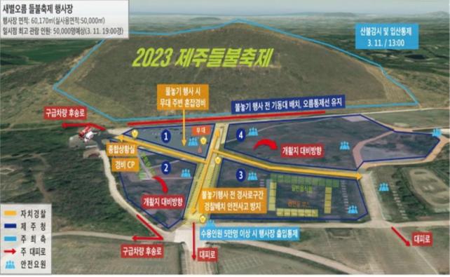(3ÀÏÂ÷ ¹ÐÁýµµ ¿ÏÈ) ¿À¸§ºÒ ³õ±â Çà»ç 1½Ã°£ ÀüºÎÅÍ ±¤Àå(ÁÖ¹«´ë)°ú °æ»ç·Î ±¸°£, Çà»çÀå ÀÔ±¸ µî 3´Ü°è·Î °æ·ÂÀ» ¹èÄ¡ÇØ ÅëÇà·Î ¹× ƯÁ¤ Àå¼Ò È¥À⠽à ÁÖº¯À¸·Î ºÐ»ê½Ãų °èȹÀÌ´Ù. ¶ÇÇÑ È»ê¼î(ºÒ²É³îÀÌ)°¡ ½ÃÀ۵Ǵ ½ÃÁ¡ºÎÅÍ´Â ¿À¸§°ú ±¤ÀåÀ¸·Î ¹ÐÁýµÇ´Â ÀοøÀ» °³È°Áö ÁÖº¯À¸·Î ºÐ»ê½ÃÄÑ È¥Àâµµ¸¦ ¿ÏȽÃÄÑ ³ª°£´Ù.