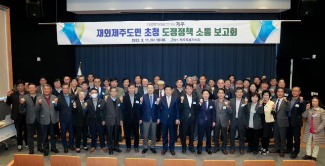º¸°íȸ¿¡´Â ¿À¿µÈÆ Áö»ç, ±èâÈñ Àç¿ÜÁ¦ÁÖµµ¹Îȸ ÃÑ¿¬ÇÕȸÀåÀ» ºñ·ÔÇØ Àü±¹ Àç¿ÜÁ¦ÁÖµµ¹Îȸ ¼Ò¼Ó ÀÓ¿ø°ú Á¦ÁÖµµÃ» ½Ç¡¤±¹Àå µî 100¿©¸íÀÌ Âü¼®Çß´Ù. º¸°íȸ´Â Çã¹®Á¤ ±âȹÁ¶Á¤½ÇÀåÀÇ µµÁ¤ 7´ë Á¤Ã¥¹æÇâ* º¸°í¸¦ ½ÃÀÛÀ¸·Î ¿À¿µÈÆ Áö»ç Àλ縻¾¸, ÁúÀÇÀÀ´ä ¼øÀ¸·Î ÁøÇàµÆ´Ù.
