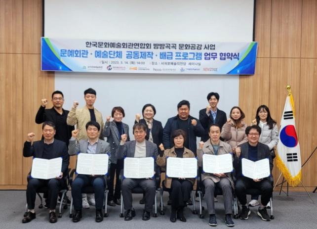 ¾÷¹«Çù¾àÀ» ü°áÇÏ¿© °¢°¢ °ø¿¬ÀåÀÇ Æ¯¼º°ú ÃàÀûµÈ Á¦ÀÛ °æÇèÀ» °øÀ¯ÇÔÀ¸·Î½á Áö¿ª¹®È¿¹¼úȸ°üÀÇ Á¦ÀÛ ´É·ÂÀ» Çâ»ó½ÃŰ°í ½Ã³ÊÁö È¿°ú¸¦ âÃâÇÒ ¿¹Á¤ÀÌ´Ù.Çù¾à½Ä¿¡¼´Â ¡ã°¢ °ø¿¬Àå °£ Á¤º¸ °øÀ¯¿Í ±³·ù ¹× »ó»ý¹ßÀü ¡ã°øµ¿À¸·Î ÀÛǰÀ» ±âȹ¡¤Á¦ÀÛ¡¤ÅõÀÚ ¡ãÁ¦ÀÛµÈ °ø¿¬¿¡ ´ëÇÑ °¢ Áö¿ªº° ¼øÈ¸°ø¿¬ ¡ã¿î¿µ¹æ½Ä ¹× ÁøÇà¿¡ °ü·ÃµÈ º¥Ä¡¸¶Å· µîÀ» Çù·ÂÇϱâ·Î Çß´Ù.