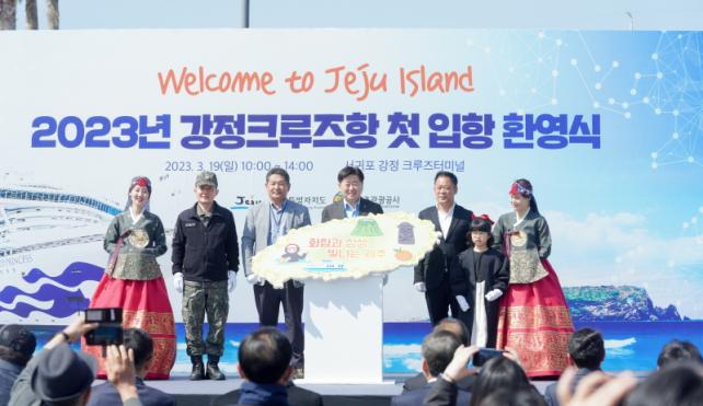 ÀÌ¿¡ Á¦ÁÖµµ´Â ¿ÃÇØ ù ±¹Á¦ Å©·çÁî¼±ÀÌ Ã¹ ÀÔÇ×À» ÃàÇÏÇϴ ȯ¿µÇà»ç¸¦ °³ÃÖÇß´Ù. À̳¯ ȯ¿µÇà»ç¿¡´Â ¿À¿µÈÆ Áö»ç, ±è´ëÁø Á¦ÁÖµµÀÇȸ ºÎÀÇÀå, Á¶»ó¿ì °Á¤¸¶À»È¸Àå, ÀÌÁ¾¿ì ¼±ÍÆ÷½ÃÀå, ±èÀÎÈ£ ÇØ±º7Àü´ÜÀåÀ» ºñ·ÔÇÑ ¹Î‧°ü‧±º °ü°èÀÚµéÀÌ Âü¼®Çß´Ù. ȯ¿µÇà»ç¿¡ ¾Õ¼ ¿À¿µÈÆ Áö»ç´Â ´ÙÀ̾Ƹóµå ÇÁ¸°¼¼½ºÈ£ ½Â°´ÀÎ »çÅä À¯ÀÌÄ¡(70) ¾¾¿Í »çÅä ¿äÄÚ(58)¾¾ ºÎºÎ¿¡°Ô Á¦ÁÖµµ ±â³äǰÀ» ¼±¹°Çϰí, ÇÔ²² ±â³ä»çÁøÀ» Âï¾ú´Ù.
