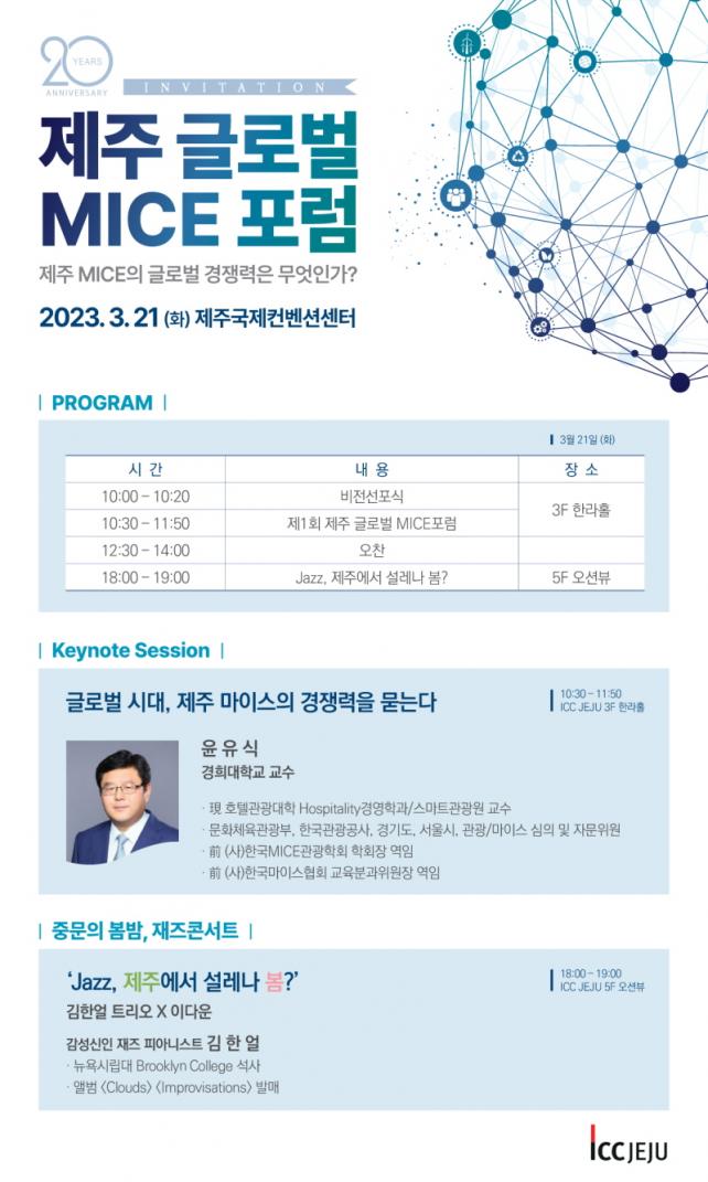À̳¯ Æ÷·³¿¡´Â °æÈñ´ëÇб³ È£ÅÚ°ü±¤´ëÇÐ À±À¯½Ä ±³¼ö(Àü Çѱ¹¸¶À̽º°ü±¤ÇÐȸÀå)ÀÇ ¡®±Û·Î¹ú ½Ã´ë, Á¦ÁÖ ¸¶À̽ºÀÇ °æÀï·ÂÀ» ¹¯´Â´Ù¡¯¶ó´Â ±âÁ¶ °¿¬¿¡ ÀÌ¾î °íÀ±ÁÖ Á¦ÁÖÆ¯º°ÀÚÄ¡µµ ±¹Á¦°ü°è´ë»ç, Àü MBC ÄÜÅÙÃ÷ ÃѰý ºÎ»çÀåÀÌÀÚ ¡®´À³¦Ç¥¡¯, ¡®¾ç½É³ÃÀå°í¡¯ µî °øÀÍ ¿¹´ÉÀÇ °³Ã´ÀÚ ±è¿µÈñ PD, Á¤Ã¶ Ä«ÇǶóÀÌÅÍ¿Í °ÂùÈ£ Áß¾ÓÀϺ¸ ³í¼³À§¿ø, ±×¸®°í Á¦ÁÖÆ¯º°ÀÚÄ¡µµÀÇȸ ¾ç¿µ½Ä ÀÇ¿ø, ij³ª´Ù Ãâ½Å ¹æ¼ÛÀÎ ¸¶ÀÌÅ© ·¹À̵å¸Õ(Mike Laidman) µîÀÌ ÆÐ³Î·Î ³ª¿Í Á¦ÁÖ MICEÀÇ ¼º°ø Àü·«°ú ±Û·Î¹ú ¸¶ÄÉÆÃ ³ëÇϿ쿡 ´ëÇØ Åä·ÐÇÑ´Ù.