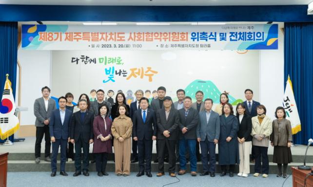 Á¦ÁÖÆ¯º°ÀÚÄ¡µµ´Â À̳¯ ¿ÀÀü 11½Ã Á¦ÁÖµµÃ» ޶óȦ¿¡¼ Á¦8±â Á¦ÁÖµµ »çȸÇù¾àÀ§¿øÈ¸ À§ÃË½Ä ¹× ÀüüȸÀǸ¦ °³ÃÖÇß´Ù. À§¿øÈ¸´Â 「Á¦ÁÖµµ »çȸÇù¾àÀ§¿øÈ¸ Á¶·Ê」¿¡ µû¶ó µµÀÇȸ, Çаè, ¾ð·Ð°è, ¹ýÁ¶°è, °æÁ¦°è, ³ëµ¿°è ¹× ½Ã¹Î»çȸ´Üü µî¿¡¼ Ãßõ¹ÞÀº À§¿ø°ú °¥µî°ü¸® Àü¹®°¡ µî 29¸í(À§ÃËÁ÷28¸í, ´ç¿¬Á÷1)À¸·Î ±¸¼ºµÆÀ¸¸ç ÀÓ±â´Â 2³âÀÌ´Ù. À̳¯ Ãâ¹üÇÑ Á¦8±â À§¿øÈ¸´Â °¢°è°¢ÃþÀÇ ÁöµµÃþ°ú ½ÇÁúÀûÀΠȰµ¿À» ÆîÄ¥ ºÐ¾ßº° Àü¹®°¡·Î ±ÕÇüÀÖ°Ô ±¸¼ºÇØ »çȸÇù¾àü°á ¹üÀ§¸¦ È®´ëÇÏ°í °¥µî°ü¸® ¿ªÇÒÀ» °ÈÇÒ °èȹÀÌ´Ù.