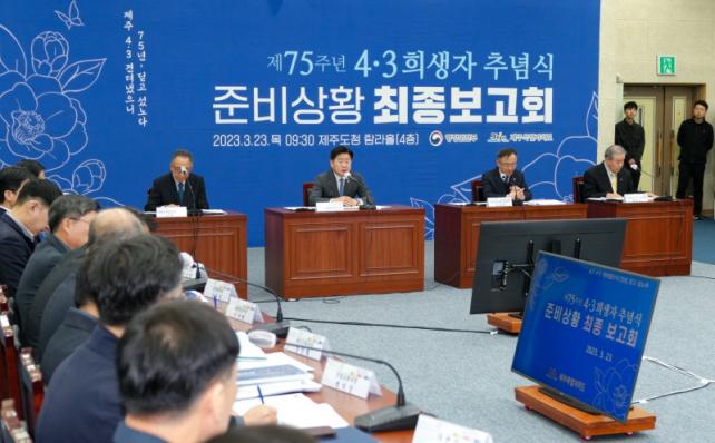 ¡®Á¦75ÁÖ³â 4‧3Èñ»ýÀÚ Ãß³ä½Ä Áغñ»óȲ ÃÖÁ¾º¸°íȸ¡¯°¡ 23ÀÏ ¿ÀÀü 9½Ã 30ºÐ Á¦ÁÖµµÃ» º»°ü 4Ãþ ޶óȦ¿¡¼ °³ÃֵƴÙ.