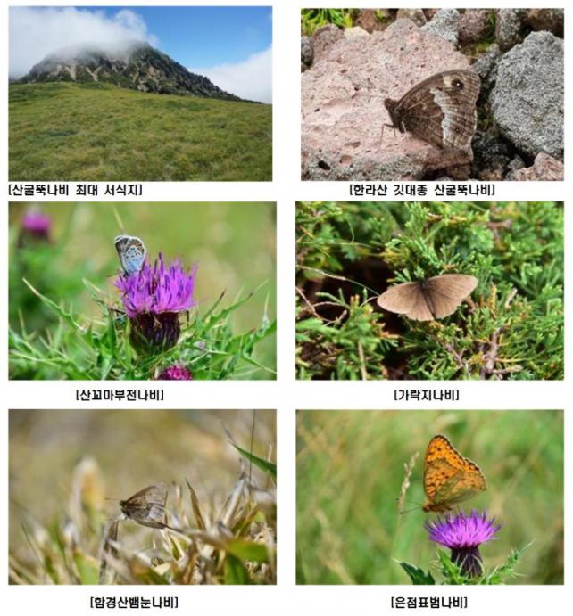 [Á¦ÁÖµµ¹Î½Å¹® = ¿ÀÁØÇõ ±âÀÚ] Á¦ÁÖÆ¯º°ÀÚÄ¡µµ ¼¼°èÀ¯»êº»ºÎ(º»ºÎÀå °í¿µ¸¸)´Â ÇѶó»ê °í»êÁö´ë¿¡¼­ ¼­½ÄÇÏ´Â ³ªºñµéÀÌ ´õ¿í ³ôÀº °íÁö´ë·Î À̵¿Çϸ鼭 ¼­½ÄÁö¿Í °³Ã¼ ¼ö°¡ ÁÙ¾îµé°í ÀÖ´Ù°í ¹àÇû´Ù.   ÃÖ±Ù 5³â°£ ÇѶó»ê 1,300m ÀÌ»ó °íÁö´ë¿¡¼­ ³ªºñÀÇ ¼­½Ä»óȲÀ» ¸ð´ÏÅ͸µ °á°ú, ¸êÁ¾À§±âÁ¾ÀÎ »ê±¼¶Ò³ªºñ µî 30¿© Á¾ÀÇ ¼­½ÄÁö¿Í °³Ã¼¼ö º¯È­°¡ ÀϾ °ÍÀ¸·Î ³ªÅ¸³µ´Ù.ƯÈ÷, »ê±¼¶Ò³ªºñ´Â ÇѶó»êÀ» ´ëÇ¥ÇÏ´Â ±ê´ëÁ¾À¸·Î ±¹³»¿¡¼­´Â ÇѶó»ê¿¡¸¸ ¼­½ÄÇÏ´Â Á¾À¸·Î, 2005³â õ¿¬±â³ä¹° Á¦458È£¿Í 2012³â¿¡ ¸êÁ¾À§±â¾ß»ý»ý¹°¥°±ÞÀ¸·Î ÁöÁ¤µÅ º¸È£¹Þ°íÀÖ´Ù.   ÇѶó»ê ¿µ½ÇÁö¿ªºÎÅÍ ¹é·Ï´ã ÀÏ´ë±îÁö ÇØ¹ß°íµµº° Á¶»ç¿¡ µû¸£¸é ÀúÁö´ëÀÇ µû½ºÇÑ Áö¿ª¿¡ ¼­½ÄÇÏ´Â ³²¹æ°è ³ªºñÀÎ ±¼¶Ò³ªºñ, ¹èÃßÈò ³ªºñ, ¼Òö²¿¸®ºÎÀü³ªºñ µîÀº ÇØ¹ß 1,700m À­¼¼¿À¸§ Áö¿ªÀ» Áß½ÉÀ¸·Î °íÁö´ë¿¡¼­ »õ·Ó°Ô °üÂûµÆ´Ù.ÀÌ¿¡ ¹ÝÇØ ¼­´ÃÇÑ ±âÈĸ¦ ÁÁ¾ÆÇÏ´Â ºÏ¹æ°è ³ªºñÀÎ »ê±¼¶Ò³ªºñÀÇ °æ¿ì´Â ¿¹Àü¿¡ ºñÇØ 200m Á¤µµ ³ôÀº ÇØ¹ß 1,700m ÀÌ»óÀ¸·Î ¼­½ÄÁö¸¦  ¿Å°Ü°£ °ÍÀ¸·Î È®Àεưí, °³Ã¼ ¼öµµ 2019³â¿¡ ºñÇØ Áö³­ÇØ¿¡´Â 30% Á¤µµ °¨¼ÒÇÑ °ÍÀ¸·Î Á¶»çµÆ´Ù.   ³ªºñ´Â ȯ°æº¯È­¿¡ ¹Î°¨ÇÏ°Ô ¹ÝÀÀÇϱ⠶§¹®¿¡ ±âÈĺ¯È­ ÁöÇ¥Á¾À¸·Î Ȱ¿ëµÈ´Ù. ÇѶó»ê °í»êÁö¿ª¿¡ ÀûÀÀÇØ »ì¾Æ¿Â ºÏ¹æ°è ³ªºñ´Â ȯ°æº¯È­¿¡ ´õ¿í ¹Î°¨ÇÏ°Ô ¹ÝÀÀÇϹǷΠ¸êÁ¾À§±â¿¡ óÇÒ ¼öµµ ÀÖ´Â °ÍÀ¸·Î ºÐ¼®µÈ´Ù. ¼¼°èÀûÀÎ Áö±¸¿Â³­È­ÀÇ ¿µÇâÀ¸·Î ÇѶó»êÀÇ È¯°æÀÌ ´Þ¶óÁö¸é¼­ ÇѶó»ê¿¡ ¼­½ÄÇÏ´Â ³ªºñ±ºÁýµµ ¿µÇâÀ» ¹Þ´Â °ÍÀ¸·Î º¸°íÀÖ´Ù.   ÇÑÆí, °íÁ¤±º ÇѶó»ê¿¬±¸ºÎÀåÀº ¡°ÇѶó»ê °íÁö´ë¿¡´Â ¹é·Ï´ãÀ» Áß½ÉÀ¸·Î ±ê´ëÁ¾ÀÎ »ê±¼¶Ò³ªºñ¸¦ ºñ·ÔÇØ 30¿© Á¾ÀÇ ³ªºñ°¡ ¼­½ÄÇѴٸ鼭, ¼ö½Ê³â °£ÀÇ ±âÈĺ¯È­¿Í ¼­½ÄÁö ȯ°æº¯È­·Î °íÁö´ë ³ªºñµéÀÇ °³Ã¼±º º¯µ¿°ú ÇÔ²² ¼­½ÄÁö¸¦ ´õ¿í ³ôÀº °÷À¸·Î À̵¿ÇÏ´Â °ÍÀ¸·Î ³ªÅ¸³ª Áö¼ÓÀûÀÎ ¸ð´ÏÅ͸µ°ú ÇÔ²² Á¾ º¸Àü¿¬±¸¸¦ ÁøÇàÇØ ³ª°¡°Ú´Ù¡±°í ¸»Çß´Ù.
