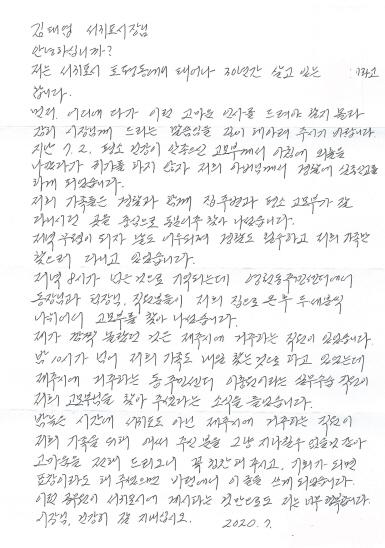 ¶ÇÇÑ, ¹Ì±Í°¡ÀÚÀÇ °¡Á·ÀÌ Á÷¿øºÐµé°ú ÁֹκеéÀÇ µµ¿òÀ¸·Î °¡Á·À» ã°Ô µÇ¾î °¨»çÇÏ´Ù°í ¼±ÍÆ÷½ÃÀå¿¡ °¨»ç ÆíÁö¸¦ º¸³» ¡°ÀúÈñ °¡Á·À» À§ÇØ ¾Ö½áÁֽŠºÐÀ» ±×³É Áö³ªÄ¥ ¼ö ¾ø¾î ¾îµð¿¡´Ù°¡ ÀÌ·± °í¸¶¿î Àλ縦 µå·Á¾ß ÇÒÁö ¸ô¶ó ½ÃÀå´Ô²² ÆíÁö¸¦ µå¸®´Ï ²À ĪÂùÇØÁֽðí, ±âȸ°¡ µÇ¸é ǥâÀÌ¶óµµ ÇØÁÖ¼ÌÀ¸¸é ÇÕ´Ï´Ù. ÀÌ·± °ø¹«¿øÀÌ ¼±ÍÆ÷½Ã¿¡ °è½Ã´Ù´Â °Í¸¸À¸·Îµµ Àú´Â ³Ê¹« ÇູÇÕ´Ï´Ù.¡±¶ó°í °í¸¶¿òÀ» ÀüÇØ ¿Ô´Ù.