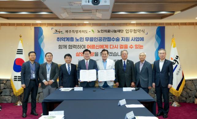 Á¦ÁÖµµ´Â 25ÀÏ ¿ÀÀü 10½Ã Á¦ÁÖµµÃ» ¹é·ÏȦ¿¡¼ ³ëÀÎÀǷᳪ´®Àç´Ü(ÀÌ»çÀå ±è¼ºÈ¯)°ú ¡®Ãë¾à°èÃþ ³ëÀÎ ¹«¸ Àΰø°üÀý ¼ö¼ú Áö¿ø»ç¾÷¡¯À» À§ÇÑ ¾÷¹«Çù¾àÀ» ü°áÇß´Ù. ³ëÀÎÀǷᳪ´®Àç´ÜÀº 2015³âºÎÅÍ º¸°Çº¹ÁöºÎÀÇ ¡®³ëÀÎ ¹«¸Àΰø°üÀý ¼ö¼ú Áö¿ø»ç¾÷¡¯À» ¼öÇàÇÏ´Â ±â°üÀÌ´Ù.