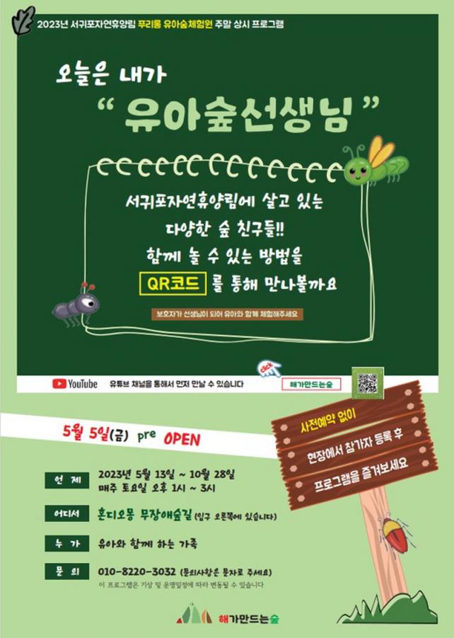 5¿ù 13ÀϺÎÅÍ 10¿ù 28ÀϱîÁö ¸ÅÁÖ Åä¿äÀÏ 13½Ã~15½Ã ¼±ÍÆ÷ÀÚ¿¬È޾縲 È¥µð¿À¸ù ¹«Àå¾Ö³ª´®½£±æ¿¡¼ »ó¼³ ÁøÇàÇϸç, Á¤ÇØÁø ½Ã°£¿¡ ´©±¸³ª ÇöÀå Á¢¼ö·Î Âü¿©ÇÒ ¼ö ÀÖ´Ù. ¿î¿µÀº 2023³â ¼±ÍÆ÷ÀÚ¿¬È޾縲 À¯¾Æ½£ ±³À° À§Å¹¿î¿µ¾÷üÀÎ ¡®Á¦ÁÖ³ª´Â¡¯ÀÇ À¯¾Æ½£Áöµµ»ç°¡ ÁøÇàÇÑ´Ù.
