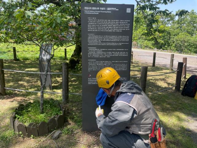 [Á¦ÁÖµµ¹Î½Å¹® = ¿À½ÂÅà ±âÀÚ] Á¦ÁÖÀÚ¿¬¹®È­Àçµ¹º½¼¾ÅÍ(¼¾ÅÍÀå °­¿µÁ¦)°¡ Áö³­ 15Àϰú 16ÀÏ ÀÌÆ²¿¡ °ÉÃÄ, õ¿¬±â³ä¹° ¡®Á¦ÁÖ µµ·Ãµ¿ ±Ö³ª¹«·ù¡¯¿Í Á¦ÁÖÆ¯º°ÀÚÄ¡µµ ±â³ä¹° ¡®°üÀ½»çÀÇ ¿Õº¢³ª¹« ÀÚ»ýÁö¡¯¿¡¼­ ¾È³»ÆÇÀÇ º¯»öµÇ°í ¹þ°ÜÁø À½°¢ ±Û¾¾ ºÎºÐÀ» ÃæÁøÇÏ´Â ÀÛ¾÷À» ½Ç½ÃÇß´Ù°í ¹àÇû´Ù.   ¹®È­ÀçÀÇ ¿ª»ç¿Í ±× °¡Ä¡¸¦ ¼³¸íÇϰí, À§Ä¡¸¦ ³ªÅ¸³»´Â Ç¥Áö¼®ÀÌ µÇ¾îÁֱ⵵ ÇÏ´Â ¾È³»ÆÇÀº, ¹®È­Àç µ¹º½ Ȱµ¿¿¡¼­ ¡®°æ¹Ì¼ö¸®¡¯ ºÐ¾ßÀÇ ¡®¾È³»ÆÇ Á¤ºñ¡¯Ç׸ñÀ¸·Î ºÐ·ù¡¤°ü¸®µÇ°í ÀÖ´Ù.   Á¦ÁÖÀÚ¿¬¹®È­Àçµ¹º½¼¾ÅÍ´Â 2020³â 1¿ùºÎÅÍ Á¦ÁÖµµÀÇ Ãµ¿¬±â³ä¹°, ¸í½Â, ½Ãµµ±â³ä¹°À» ºñ·ÔÇÑ µ¿±¼, ³ë°Å¼ö µî 277°³¼ÒÀÇ ÀÚ¿¬¹®È­À縦 ´ë»óÀ¸·Î µ¹º½ »ç¾÷À» ½Ç½ÃÇϰí ÀÖÀ¸¸ç, º¹±Ç±â±ÝÀÇ Áö¿øÀ» ¹Þ¾Æ ½ÃÇàµÇ°í ÀÖ´Ù.
