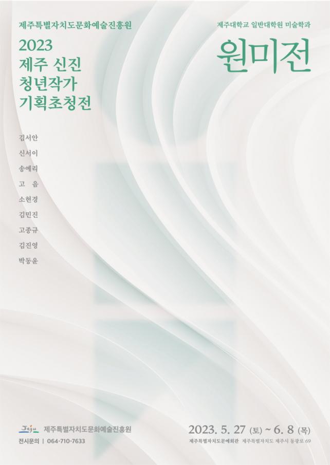 [Á¦ÁÖµµ¹Î½Å¹® = ¿À½ÂÅà ±âÀÚ] Á¦ÁÖ¹®È­¿¹¼úÁøÈï¿ø(¿øÀå ±èŰü)ÀÌ 27ÀϺÎÅÍ 6¿ù 8ÀϱîÁö ¹®¿¹È¸°ü Á¦3Àü½Ã½Ç¿¡¼­ ¡®2023 Á¦ÁÖ ½ÅÁø û³âÀÛ°¡ ±âȹÃÊûÀü <¿ø¹ÌÀü>¡¯À» °³ÃÖÇÑ´Ù.   Á¦ÁÖ ½ÅÁø û³âÀÛ°¡ ±âȹÃÊûÀüÀº ¹®È­¿¹¼úÁøÈï¿ø¿¡¼­ ¸Å³â ÃßÁøÇÏ´Â ¡®Á¦ÁÖû³âÀÛ°¡Àü¡¯°ú ¿¬°èÇØ ±âȹµÈ ÇÁ·Î±×·¥ÀÌ´Ù. û³âÀÛ°¡µéÀÌ º»°ÝÀû Ȱµ¿À» ½ÃÀÛÇϱ⠾ռ­ âÀÛȰµ¿À» Áö¿øÇϰí, ¼ºÀåÇÒ ¼ö ÀÖ´Â ÀåÀ» ¸¶·ÃÇϱâ À§ÇØ ÃßÁøµÆ´Ù.   ¿ÃÇØ Á¦ÁÖ ½ÅÁø û³âÀÛ°¡ ±âȹÃÊûÀü ù ¹øÂ° Àü½Ã·Î ¸¶·ÃµÈ <¿ø¹ÌÀü>Àº ¸Å³â °³ÃֵǴ Á¦ÁÖ´ë ¹Ì¼úÇаú ´ëÇпø»ýµéÀÇ Àü½Ã·Î, ¡®9Óö¡¯¶ó´Â ºÎÁ¦·Î, ¼­¾çÈ­, Çѱ¹È­, Á¶¼Ò µî ´Ù¾çÇÑ Àü°ø ºÐ¾ß¿¡¼­ Ȱµ¿ÇÏ´Â 9¸íÀÇ ÀÛ°¡°¡ °¢ÀÚÀÇ »ö´Ù¸¥ ½Ã°¢°ú ±¸µµ¸¦ ¹ÙÅÁÀ¸·Î ÃÑ 27Á¡ÀÇ ÀÛǰÀ» ¼±º¸ÀδÙ.   À̹ø¿¡ Àü½ÃÇÏ´Â ÀÛǰÀº ´Ù¾çÇÑ Ç¥Çö°ú Á¢±Ù¹ý¿¡ ´ëÇÑ °í¹Î°ú ½ÇÇèÀÌ ´ã±ä ¹Ì¼úÀÛǰµéÀÌ´Ù.   ÇÑÆí, ±èŰü Á¦ÁÖ¹®È­¿¹¼úÁøÈï¿øÀåÀº ¡°ÀþÀº ÀÛ°¡µéÀÇ ´Ù¾çÇÑ È°µ¿Àº Á¦Áֹ̼ú°è°¡ ¹ßÀüÇÏ´Â ¹Ø¹ÙÅÁÀÌ µÇ¹Ç·Î À̹ø Àü½Ã°¡ ÁÁÀº ¿¹¼ú°¡·Î ¼ºÀåÇÏ´Â Ãʼ®ÀÌ µÇ±â¸¦ ±â´ëÇÑ´Ù¡±¸ç ¡°ÀÛ°¡µéÀÇ Ã¢ÀÛȰµ¿À» Áö¿ø․À°¼ºÇÏ´Â ´Ù¾çÇÑ ÇÁ·Î±×·¥À» ±âÈ¹ÇØ Á¦Áֹ̼ú°ú ¹®È­¿¹¼ú Ȱ¼ºÈ­¿¡ ÃÖ¼±À» ´ÙÇϰڴ١±°í ¸»Çß´Ù.