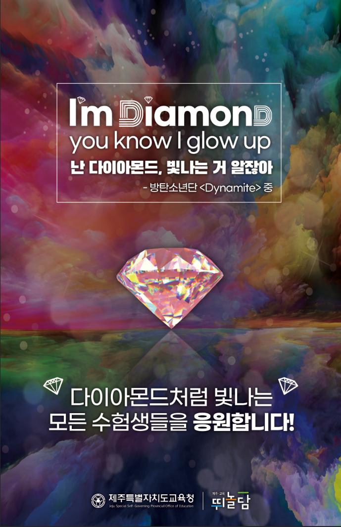 Çö¼ö¸·¿¡´Â ¡°I‵m Diamond you know I grow up(³ ´ÙÀ̾Ƹóµå, ºû³ª´Â °Å ¾ËÀݾÆ). ´ÙÀ̾Ƹóµåó·³ ºû³ª´Â ¸ðµç ¼öÇè»ýµéÀ» ÀÀ¿øÇÕ´Ï´Ù¡±¶ó´Â ¹®±¸°¡ ´ã°å´Ù.
