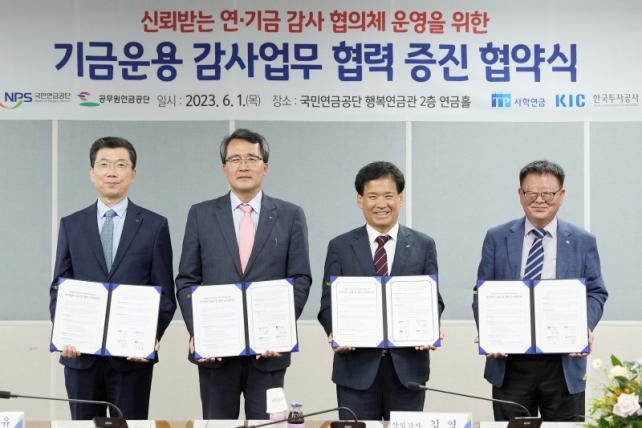 À̹ø ¾÷¹«Çù¾àÀº 3´ë °øÀû ¿¬±Ý±â°ü(°ø¹«¿ø‧±¹¹Î‧»çÇבּÝ)°ú Çѱ¹ÅõÀÚ°ø»ç°¡ ¸ÎÀº ÃÖÃÊÀÇ ´ÙÀÚ°£ ¾÷¹«Çù¾àÀ¸·Î¼ ±â±Ý¿î¿ë °ü·Ã °¨»ç¾÷¹« Çù·Â °È¸¦ À§ÇØ ÀÌ·ç¾îÁ³´Ù. Çù¾àÀº ¡â°¨»ç Àü¹®¼º Á¦°í¸¦ À§ÇÑ »óÈ£ Á¤º¸ Á¦°ø ¹× °¨»ç±â¹ý °øÀ¯ ¡â°¨»ç¼º°ú Çâ»óÀ» À§ÇÑ ±³À°ÇÁ·Î±×·¥ ±¸¼º ¹× °øµ¿ ¿î¿µ ¡â°¨»ç ¿ª·® °È¸¦ À§ÇÑ ÇÕµ¿ ¿öÅ©¼ó °³ÃÖ µî »óÈ£ ±³·ù¿Í Çù·ÂÀÇ ³»¿ëÀ» ´ã°í ÀÖ´Ù. °ø¹«¿ø¿¬±Ý°ø´Ü ¹®¼ºÀ¯ »óÀÓ°¨»ç´Â ¡°À̹ø ¾÷¹«Çù¾àÀ» ¹ÙÅÁÀ¸·Î °¢ ±â°üÀÌ Àû±Ø Çù·ÂÇÏ¿© ±×°£ÀÇ °¨»ç¼º°ú¿Í ³ëÇϿ츦 °øÀ¯ÇÔÀ¸·Î½á ±â±Ý¿î¿ë °¨»ç Àü¹®¼ºÀ» °ÈÇÏ°í °ÇÀüÇÑ ±â±Ý¿î¿ë¿¡ ´ëÇÑ ´ë³»¿Ü ½Å·Ú¸¦ º¸´Ù ´õ ³ôÀÏ ¼ö Àֱ⸦ ±â´ëÇÑ´Ù.¡±°í ¸»Çß´Ù.