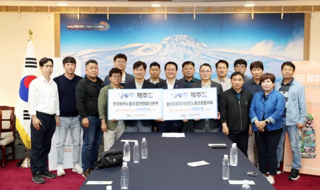 Àü±¹ÈÇг뵿Á¶ÇÕ¿¬¸Í ¿ï»êº»ºÎ(ÀÇÀå Á¤¿ø½Ä)¿Í ¿ï»ê ¹ÌÆ÷±¹°¡»ê´Ü ³ëµ¿Á¶ÇÕÇùÀÇȸ(ÀÇÀå ¹é±âÅÂ)´Â 8ÀÏ Á¦ÁÖµµÃ»À» ¹æ¹®ÇØ¡°1³â¿¡ µÎ¼¼¹øÀº »ç¿ø ¿öÅ©¼ó µîÀ¸·Î Á¦ÁÖ¸¦ ²À ¹æ¹®Çϰí ÀÖ¾î ¸¶À½ÀÇ °íÇâÀÎ Á¦ÁÖ¿¡ ±âºÎ±ÝÀ» Àü´ÞÇϱâ·Î Çß´Ù¡±¸é¼ ¡°±âȸ°¡ µÈ´Ù¸é Á¦ÁÖÀÇ ¿ª»ç¿Í ¹®È¿¡ ´ëÇÑ ±³À°À» ¹Þ´Â ÀÚ¸®µµ ¸¶·ÃÇÏ¸é¼ Á¦ÁÖ¿Í Àο¬À» À̾°í ½Í´Ù¡±°í ÀüÇß´Ù.