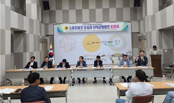 ¾çº´¿ì µµÀÇ¿ø(Á¦ÁÖÆ¯º°ÀÚÄ¡µµÀÇȸ)Àº ¡°ÆòÈ´ë°ø¿ø»ç¾÷, ½ºÆ÷Ã÷ÆÄÅ©ÀÇ º§Æ®È·Î ¼ºÎÁö¿ªÀÇ Áß½ÉÀ¸·Î Á¶¼ºÇÒ Çʿ䰡 ÀÖÀ¸¸ç, ±âÁ¸ ½ºÆ÷Ã÷½Ã¼³°úÀÇ Â÷º°È¿Í ¹Ì·¡Æ®·»µå¸¦ ¹Ý¿µÇÏ¿© Áö¼Ó°¡´ÉÇÑ ½ºÆ÷Ã÷»ê¾÷À¸·Î È®ÀåÇÒ ¼ö ÀÖ¾î¾ß ÇÑ´Ù¡±°í ÇÏ¿´´Ù.